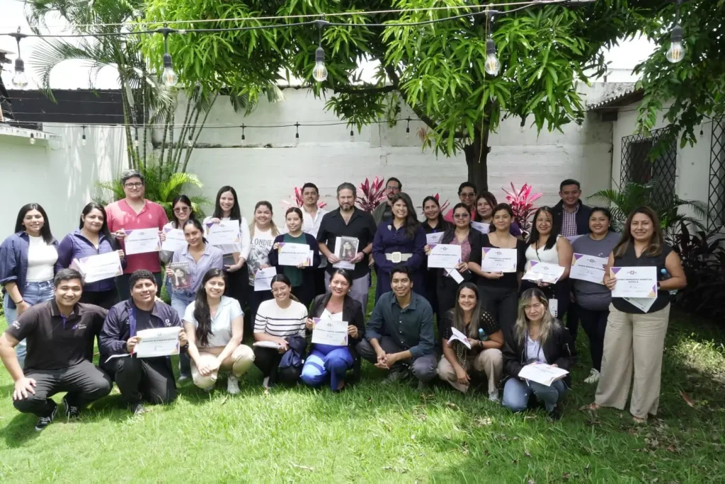Talleres en SOLCA Guayaquil (abril 2025) para equipos de atención prioritaria, enfocados en visión personal y claridad de metas, con más de 79 mujeres participantes.